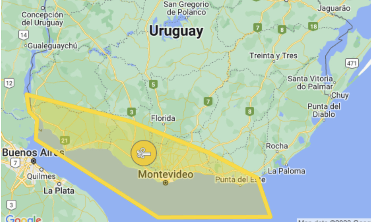 Canelones : Aguas Corrientes, Atlántida, Barra de Carrasco, Barros Blancos, Camino del Andaluz y Ruta 84, Canelones, Ciudad de la Costa, Colonia Nicolich, El Pinar, Empalme Olmos, Estación Atlántida, Estación La Floresta, Estación Pedrera, Jaureguiberry, Joaquín Suárez, Juanicó, La Floresta, La Paz, Las Piedras, Las Toscas, Los Cerrillos, Marindia, Migues, Montes, Neptunia, Pando, Parque del Plata, Paso Carrasco, Pinamar – Pinepark, Progreso, Ruta 74, Salinas, San Antonio, San Bautista, San Jacinto, San Luis, Santa Lucía, Santa Rosa, Sauce, Soca, Toledo, Villa Aeroparque, Villa Crespo y San Andrés, Villa Felicidad y Villa San José.Colonia(Todo el departamento), Florida : 25 de Agosto, 25 de Mayo, Cardal, Independencia y Mendoza.Lavalleja : Solís de Mataojo.Maldonado : Balneario Buenos Aires, Bella Vista, Canteras de Marelli, Cerro Pelado, Cerros Azules, El Chorro, El Tesoro, Gerona, Gregorio Aznárez, La Barra, La Capuera, Las Flores, Maldonado, Manantiales, Nueva Carrara, Ocean Park, Pan de Azúcar, Parque Medina, Piriápolis, Playa Grande, Playa Hermosa, Playa Verde, Pueblo Solís, Punta Ballena, Punta Colorada, Punta Negra, Punta del Este, San Carlos y Sauce de Portezuelo.Montevideo(Todo el departamento), San José : Capurro, Ciudad del Plata, Ecilda Paullier, Juan Soler, Kiyú-Ordeig, Libertad, Mal Abrigo, Puntas de Valdez, Rafael Perazza, Rodríguez, San José de Mayo y Villa María.