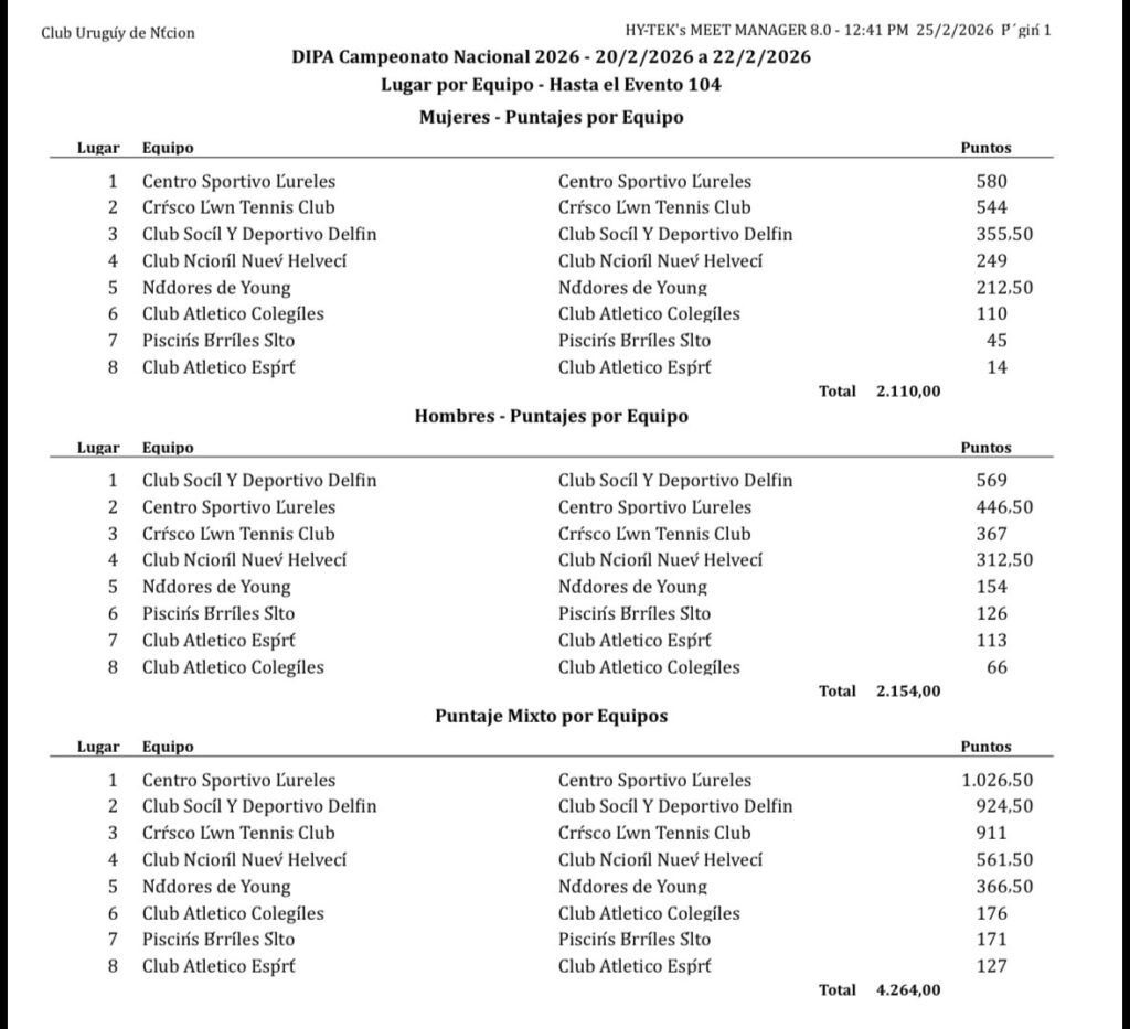 Club Atlético Colegiales tuvo una sobresaliente participación en el Campeonato Nacional de Piscinas Abiertas, logrando un destacado sexto puesto a nivel país, resultado que refleja el crecimiento sostenido de la institución en la disciplina de la natación.