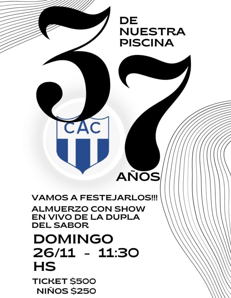 El próximo domingo 26 Comisión de Piscina de Club Atlético Colegiales Celebra el Aniversario nº 37 de su Piscina con un almuerzo con Show en el Salón de Piscina en su sede social, ubicado en 19 de Abril nº175, Rosario. Actuará en vivo La Dupla del Sabor,