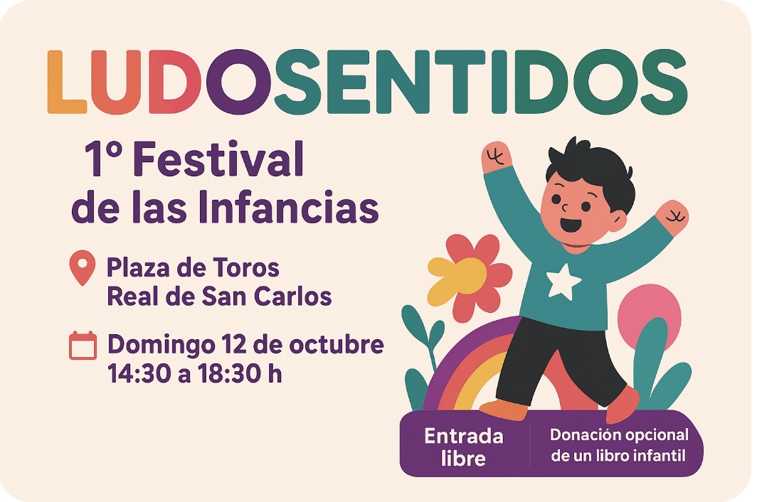 El próximo domingo 12 de octubre, la histórica Plaza de Toros Real de San Carlos se transformará en un espacio de juego, arte y descubrimiento con la realización de Ludosentidos, el 1º Festival de las Infancias.