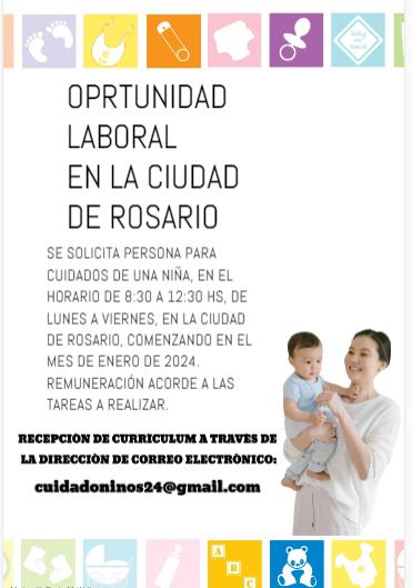 EN LA CIUDAD DE ROSARIO SE SOLICITA PERSONA PARA CUIDADOS DE UNA NIÑA.