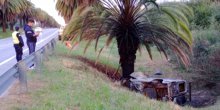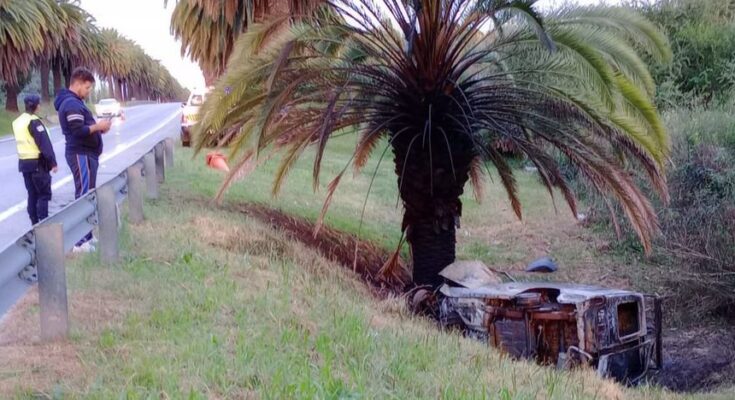 En información primaria aportada por Policía Caminera, un vehículo se incendió luego de salir de la calzada e impactar con una palmera, el único ocupante del auto falleció en el lugar.